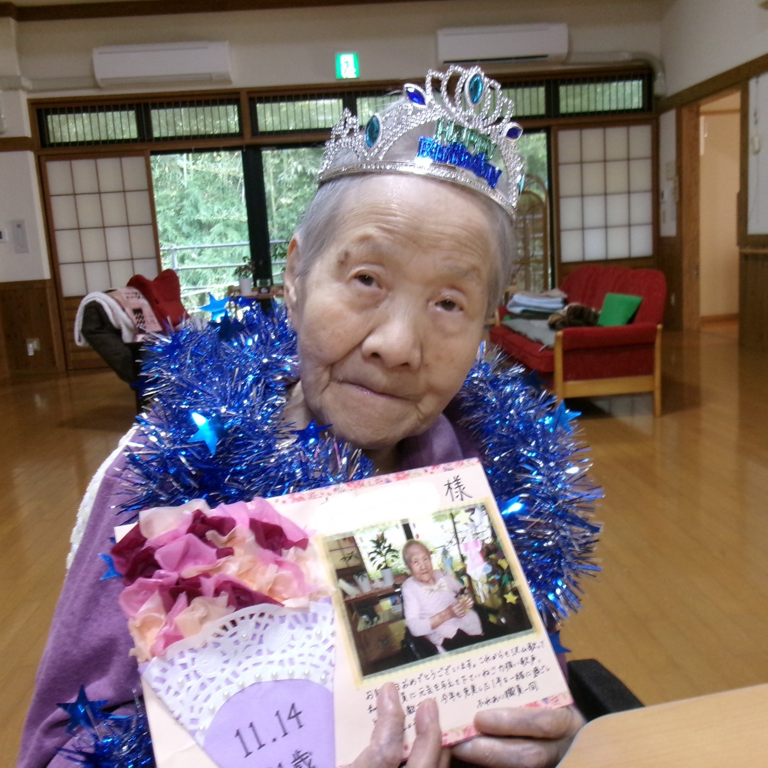 お誕生日おめでとうございます!! 職員から手作りのメッセージカードをもらったり、記念撮影をしたりと楽しい時間を過ごされました(^^)